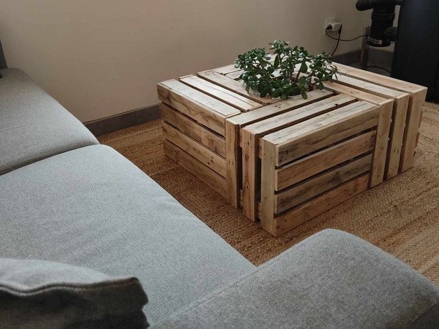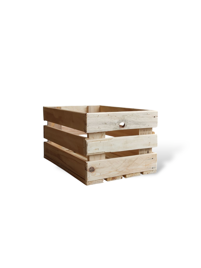Caisse en bois massif de pin issu de palettes recyclées, fabriquée à la main dans notre atelier. Chaque pièce est unique.